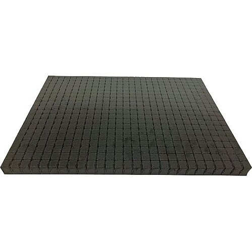 クッションに正方形(15mm×15mm)の切り目が入っているので、収納したいアイテムのサイズや数に合わせて切り取り可能です。クッションは、硬めの発泡ポリエチレンで収納したものをしっかりホールドします。 |