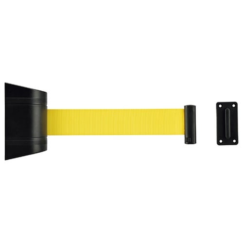 壁面に直接設置するタイプのベルトパーテーションで、通路などでの立入制限箇所の区分けに最適です。ベルトは自動巻取り式でフレキシブルな長さ調整が可能です。ベルト受け金具が付属しています。
