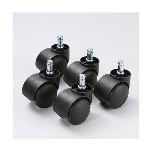 カーペット床上での使用に適したナイロン製のキャスター。カーペットなどの床での使用に適したナイロン製の双輪キャスターです。キャスターが破損した時の交換用に。11.12mmの差込穴であればどの椅子にも対応 |
