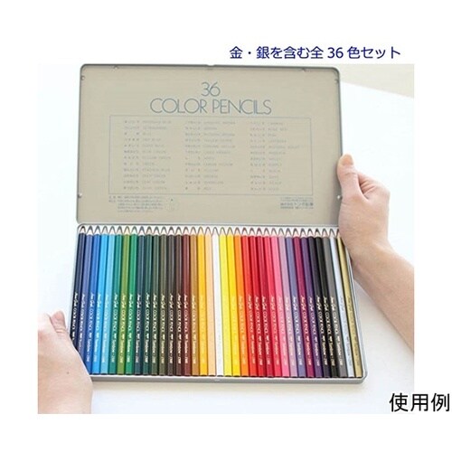 1970年代発売のロングセラー色鉛筆の缶入36色セットです。高品質の色芯を採用。鮮やかな発色、優れた定着性、なめらかな書き心地です。 |
