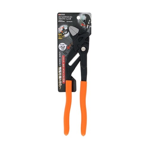 つかむはさむまわすプライヤー形状+モンキレンチの機能にぎる→まわすで連続作業がラク!口開き幅をボタンで簡単、クイック調整 |