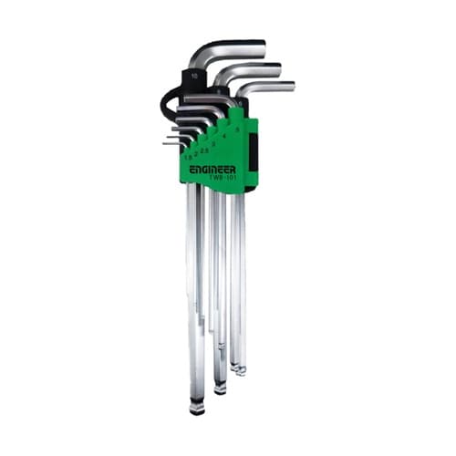 斜め25°の角度から締め付けできるボールポイントレンチセット。強力な締め付けに適したロングタイプ。材質は耐久性に優れたニッケルクロムモリブデンバナジウム鋼。持ち運び、保管に便利な折りたたみ式ホルダー。 |