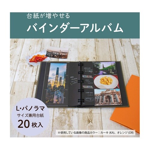 写真が引き立つ黒台紙、カラーデニムの布張り表紙ポケットアルバムカジュアルなカラーデニムの布貼り表紙。ブックタイプと台紙が増やせる。バインダータイプの2種類。替台紙の補充枚数(AL−21の場合/10−1