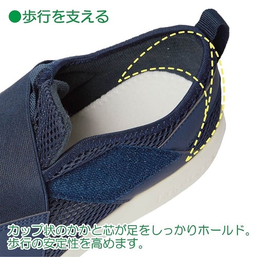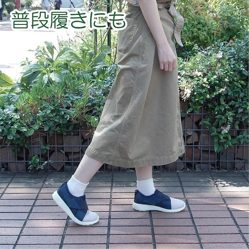 安定した歩行をサポートする室内外兼用シューズです。普段履きにも使えるツートーンカラーのおしゃれでカジュアルなデザインです。足幅4E、足囲3.5Eとゆったり設計で足のストレスを軽減し、中敷を取り外すと足 |