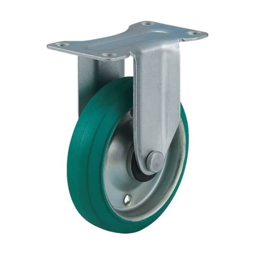 スチール製なので丈夫です。キャスター金具は三価クロムメッキ処理をしています。エコ省音運搬車用固定キャスター。 |