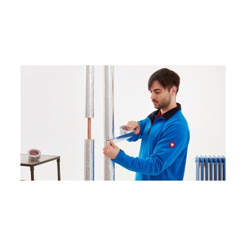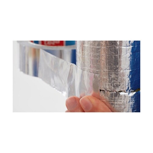 軽く巻き戻し出来ます。長期的な使用が可能です。湿気、蒸気などへのガスバリア性に優れます。基材のアルミは高い導電性と熱伝導性を持ちます。冷蔵庫のコイルの貼付けに適します。空調ダクトシールや保温材目地用途 |