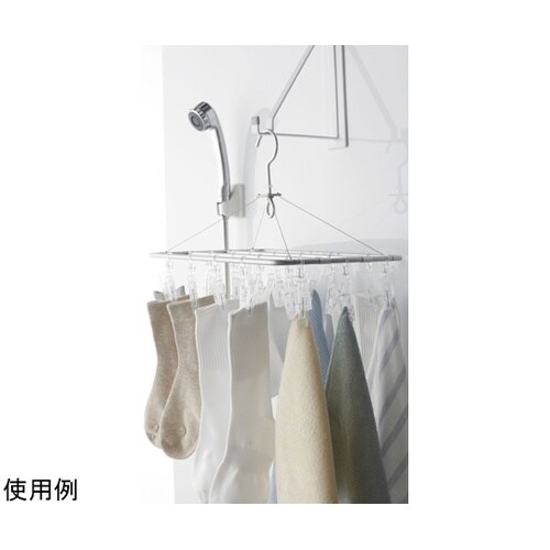 マグネットが付く浴室壁面に簡単取り付けの物干しハンガー。干し場所に困る洗濯物に便利! |