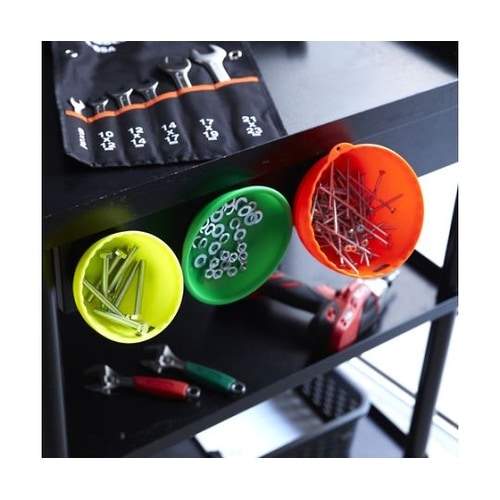 強いマグネットにより安心・安全にOA家具・機械設備に貼り付けて部品・工具管理ができます。色別に使用することで、サイズ別・種類別のパーツ管理に便利です。作業部品・工具をまとめて収納できます。パーツ・ツー