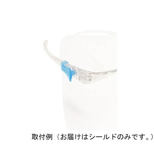 軽量設計で長時間の着用でも疲れにくいです。左右のストッパーを外すだけで簡単にシールドが交換できます。フレームに柔軟性があるため、顔幅を選ばず着用できます。メガネの上から装着できます。眼鏡型フェイスシー |