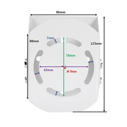 監視カメラ角度調整ハウジングブラケット取り付け金具120x96x76mmサイズは画像図面を参照同梱品はネジM6x6 2個材質:iron+spray paintModel名:609監視/防犯カメラの方向 |