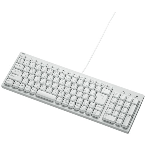 幅400mm以下のコンパクトサイズでありながら、テンキー付きのフルキーボードです。キーピッチはスタンダードキーボードと同じ19mmキーピッチです。文字の耐久性に優れたレーザー印刷を採用しています。使用