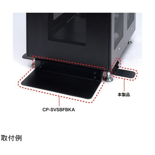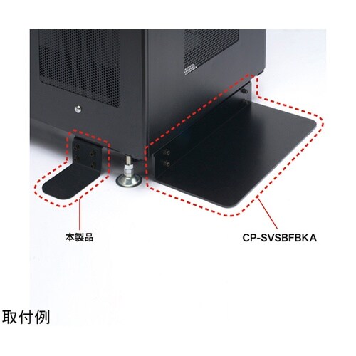 ラック本体の転倒防止にご使用ください。ラック本体側面部へ取り付けます。床面にしっかりと接地するようにボルト留め位置はスライドするようになっています。下面にはゴム板を貼っています。※ラック本体組立後の本 |