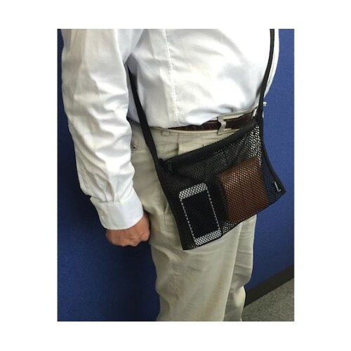 財布やスマートフォンなどの小物を携帯するのに便利なバッグです。メッシュ生地のため軽く、中身が見やすい仕様です。工場見学時などの貴重品入れとして。最小限の工具などの携帯に。小物入れとして。 |