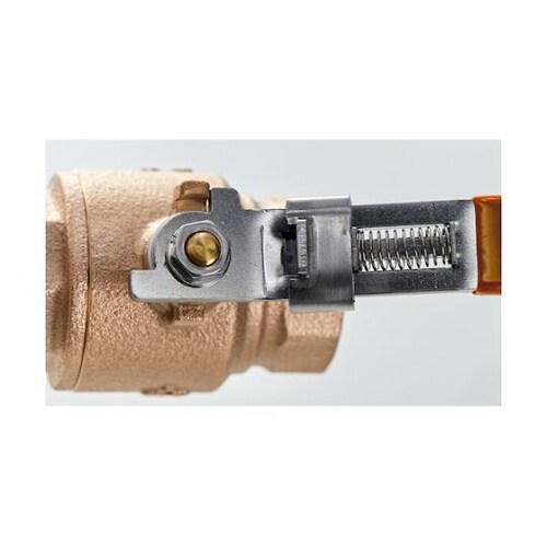 開閉ロック機構付きのため、誤作動を防止できます。指一本でロックを解除できます。圧力損失の小さいフルボアタイプで、流量の大きい配管に適しています。水・油・空気用。 |