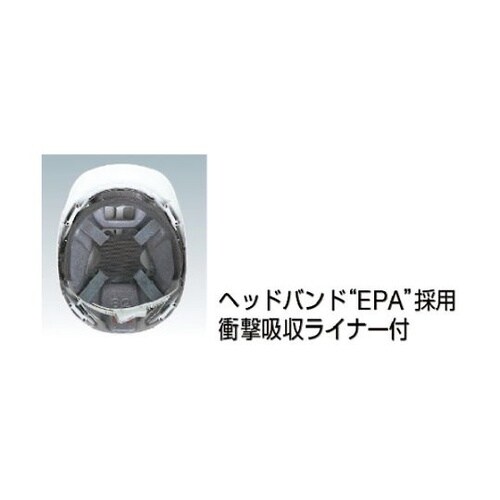 二層構造にすることで広い通気孔面積を実現しました。通気性に優れたヘルメットです。ヘッドバンドは、被ったまま片手で簡単に調整が可能です。飛来・落下物用。墜落時保護用。