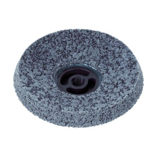 傘型の特殊形状に加工されているため、常にディスクの先端がワークにあたり、美しい仕上げができます。柔軟性が高く、凹凸面にもよく馴染み、ワークを削りすぎません。目づまりが少なく、ナイロンの溶着がありません |