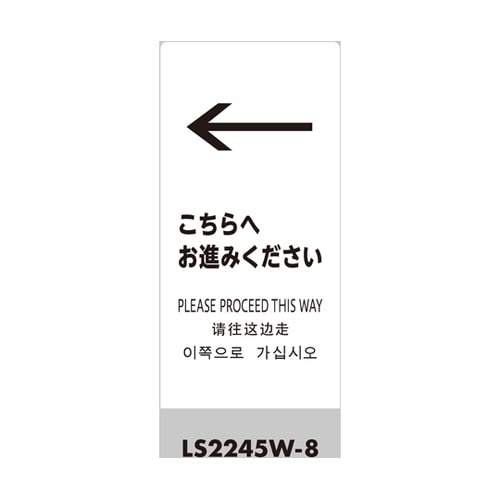 矢印は付属のカットシートを表示したい方向へ自由に貼り付けることができます。片面マット加工で文字が反射しにくく目につきやすいです。日本語・英語・韓国語・中国語の4ヶ国語対応です。L型なので置くだけで標示 |