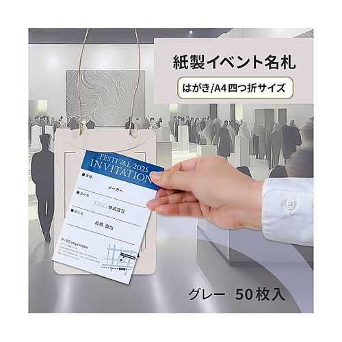 オール紙製イベント名札 はがき・A4四折サイズ グレー 1箱(50枚入) CT−E4