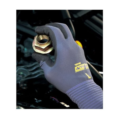 油をともなう作業でもグリップ性に優れています。特殊スベリ止め(マイクロフィニッシュ)加工を施しており、油をともなう作業でも高いグリップ性能を発揮します。手のひら、指にニトリルゴムをダブルコーティングし |
