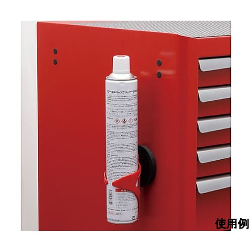 キャビネットなどの側面に貼り付けて、スプレー缶を保管するホルダー背面マグネットには取付け対象を傷めにくいラバーを装着大型円形マグネットで耐荷重3kgを確保オイルドレーナーの側面や廃油受皿に貼り付け「フ |