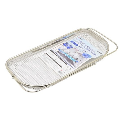 シンク端に沿った形状だから、シンクのスペースを無駄なく使用シンクに合わせて調整できるスライド式シンクをキズつけないゴム付小物の水切りにも便利なファインメッシュを使用幅約425−545mmまで伸縮可能 |