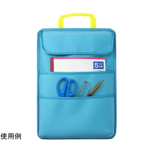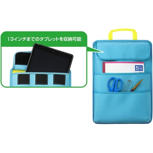 タブレットを持ち運ぶ学習に最適!教科書やノートが入る大きなポケットと便利な小物入れ用ポケットがついてるので使いやすい。ポケット部分は防水生地で雨にも強い。ストレッチタイプの生地で伸びがあるので入れやす |