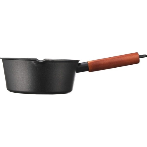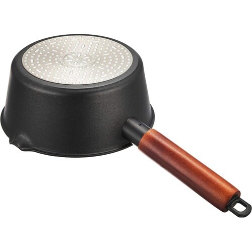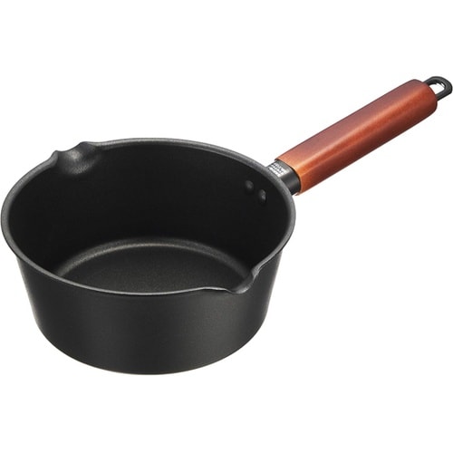 便利な注ぎ口付でスープや煮物にぴったり内面はこびりつきにくく汚れも落としやすいふっ素樹脂加工ガスコンロでもIHクッキングヒーターでも使えます