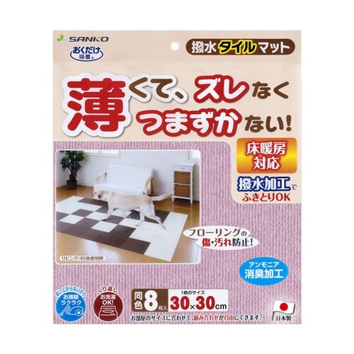 撥水加工を施しています。おくだけで取り付け、取り外し簡単。スペースに合わせて組み合わせ自由に敷いていただけます。マットの裏面が床にピタッと吸着するのでズレません。ハサミで手軽にカットできます。薄くてつ |