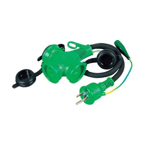 ポッキンプラグ付なので、2芯・3芯のどちらでもアダプターなしに差し込めます。アース付なので万一漏電が起きても安心です。(工具が絶縁不良になった時、漏電電流を大地に逃がし感電しないようになります)防雨構 |