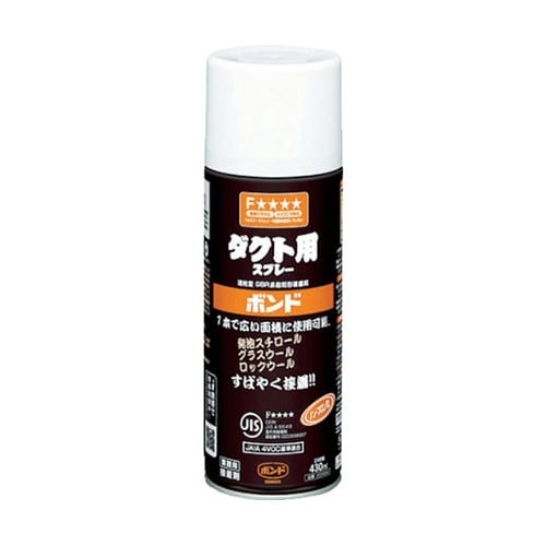 オープンタイムが長く広い面積に使用可能です。スプレーミストが細かく速乾タイプです。JIS F ☆☆☆☆規格品です。JAIA 4VOC基準適合品です。ダクト工事のグラスウール、ロックウールの接着。発泡ス |