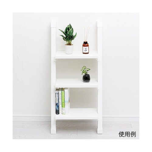 2×4材と棚板だけで作れる 立て掛けタイプのシェルフです。壁と床を傷つけない保護シートで傷にも安心です。組み立ては上下のパーツを2×4材に差し込むだけ |