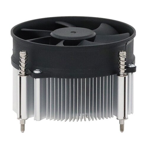 LGA115x用 静音ファン搭載CPUクーラーです。高さは62mmで、小型のPCケースにも対応します。冷却ファンからの風が下向きに流れるトップフロータイプなので、CPU周辺の電子部品などの冷却にも有効 |