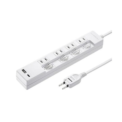 USB AポートとType−Cの2種類を搭載しており、最新のモバイル機器の充電も可能なタップ。2P・4個口・2mUSB出力合計2.4A仕様で、USB Aポート、Type−Cポートともに最大5V・2.4 |