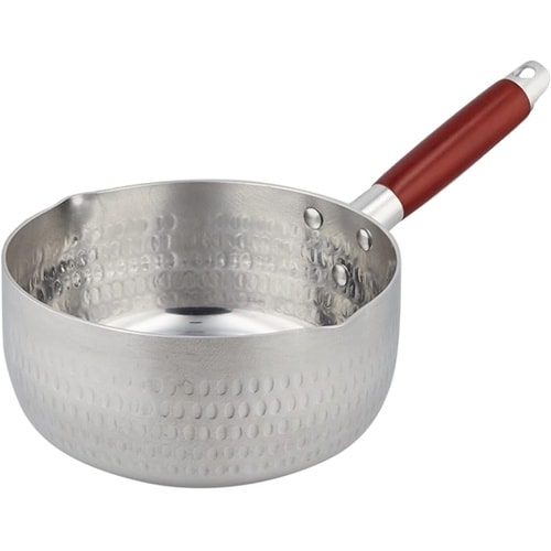 煮物・茹で物・お味噌汁づくりに。気軽に使えて便利な雪平鍋。左右両方に注ぎ口がついているため、利き手問わず汁物を注ぎやすくしました。熱伝導率が非常に高いアルミ製なのですぐにお湯が沸きます。表面に槌の跡を |