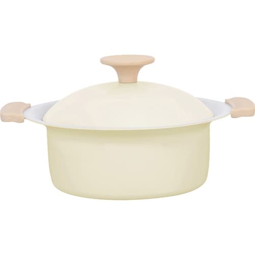 ひとり−少人数で使えるミニ卓上鍋淡いカラーでインテリアによくなじみます内面はお料理の映えるホワイトカラー本体、蓋はアルミ製で軽くて割れにくい!手に馴染むシリコン塗装つまみ便利なハンドルカバー付IHクッ