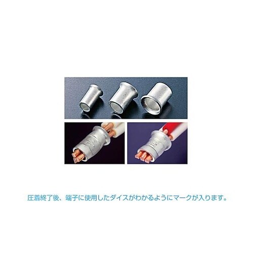 リングスリーブ用リングスリーブの圧着サイズ「小(1.6×2を含む)」「中」「大」に対応した圧着工具。圧着終了後、端子に使用したダイスがわかるようにマークが入ります。 |