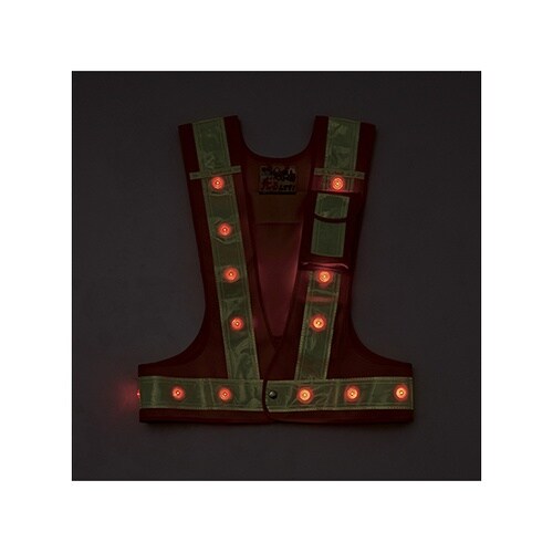 24個のLEDが腰部にも配置されており、視認性に優れています。3箇所の便利な収納用万能ポケット付で、機能性に優れています。ウエストはサイズ調整が可能です。