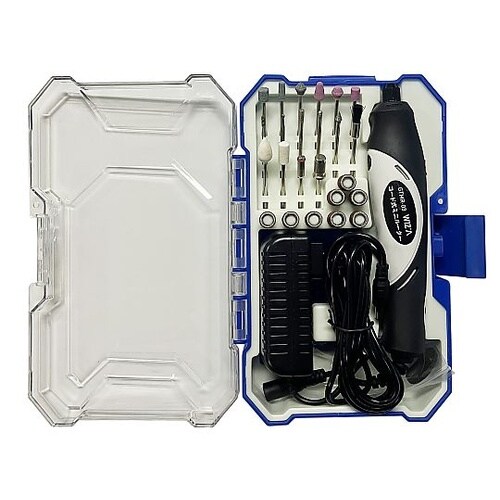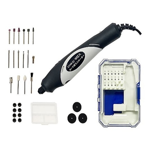 28ピースの豊富なアクセサリーセットです。先端ビットは交換しやすく、工具は不要です。回転速度調整が可能です。(3,000−13,000回転) |