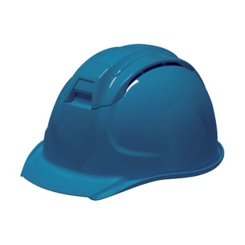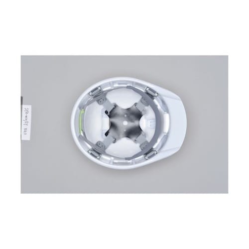 センターのエアインテークより空気を取り入れ、頭頂部2列の排気孔と後方の排気孔より熱気を排出します。ヘルメット内部のムレを軽減しました。飛来・落下物・墜落時保護用。 |