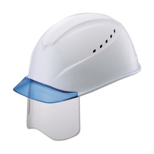 エアライトS搭載ヘルメット(ブルー透明ひさし・溝・通気孔・シールド付) 白色 1230VJ−SH−V5−W3−J