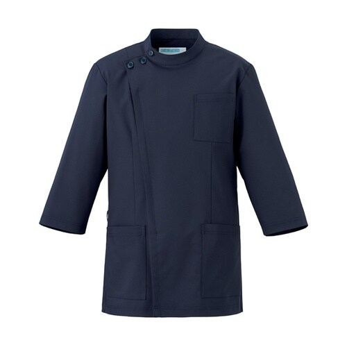 KAZEN ジャケット七分袖男女兼用 ネイビー L 763−48 A04E-2789