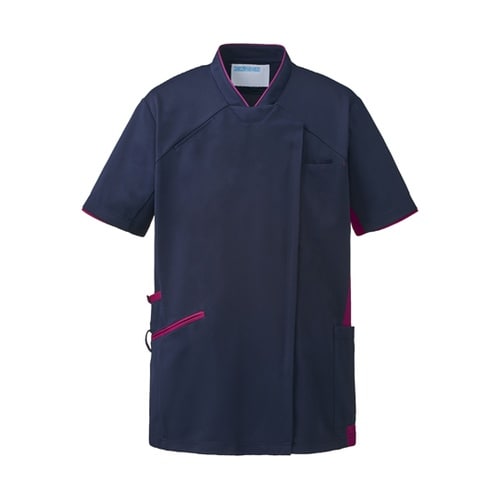 KAZEN スクラブジャケット(半袖男女)ネイビー×プラム 3L 987−48 A04E-2984