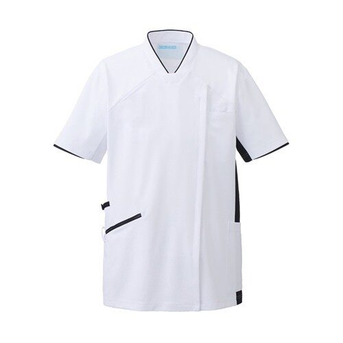 KAZEN スクラブジャケット(半袖男女)ホワイト×ネイビー S 987−18 A04E-3006