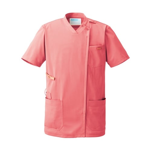 スクラブジャケット男女半袖 コーラルピンク M KZN715−24 M