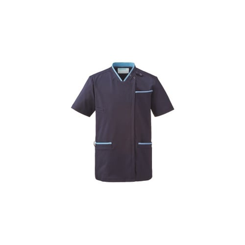 スクラブジャケット男女半袖 ネイビー×ターコイズ 4L KZN705−48 4L