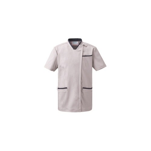 KAZEN スクラブジャケット男女半袖 ライトグレー×ネイビー 3L KZN705−46 3L A04E-3089