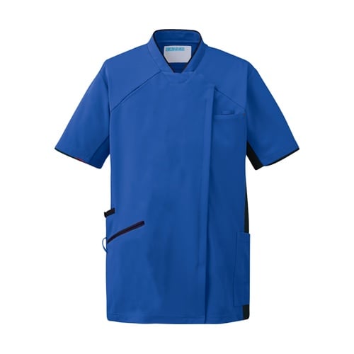 KAZEN スクラブジャケット半袖男女 ロイヤルブルー×ネイビー L 987−28 L A04E-3123