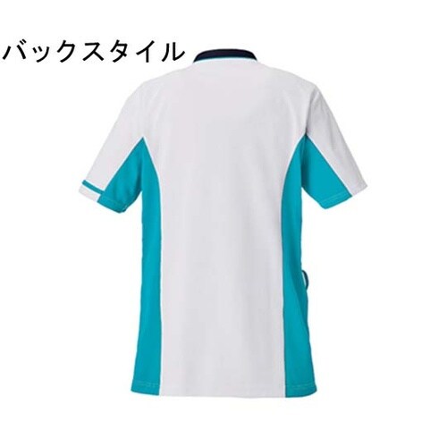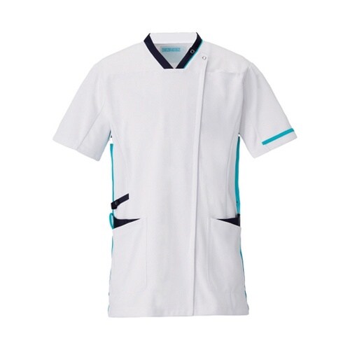 KAZEN スクラブジャケット半袖男女兼 ホワイト×ネイビー×ターコイズ LL 998−12L A04E-3161