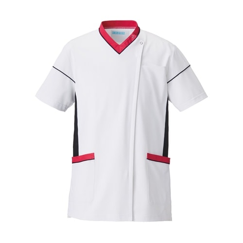 KAZEN スクラブジャケット半袖男女兼 ホワイト×ネイビー×ピンク L 034−23 A04E-3168