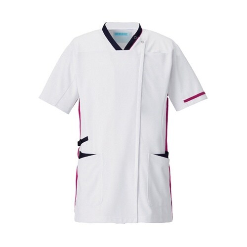 スクラブジャケット半袖男女兼 ホワイト×